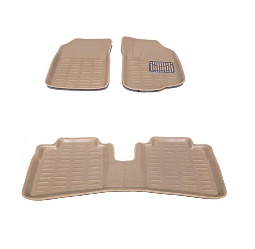 Carvito 3D Car Floor Foot Mats for Maruti Suzuki Swift Dzire (2012-2017) - Complete Set of 3 Pieces | Top-Notch PVC Material | Washable | Beige