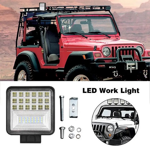 Carvito 42 LED Fog Light Square Flood Driving Lamp for Car, Off Road Truck, Jeep, SUV, ATV and UTV Fog Lamp LED (12 V, 126 W)