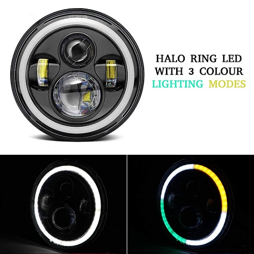 Carvito Inch Full Ring Round LED Headlight with Hi/Low Beam and Angel Eye Lamp (75W, 1 PC)
