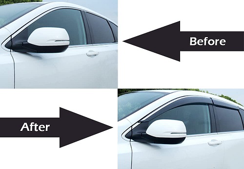 • GREAT PROTECTION - Car Wind Deflectors Deflectors will support your car with great Protection against Snow, Sun, and Rain letting you roll down windows whenever you need the fresh air to get inside.