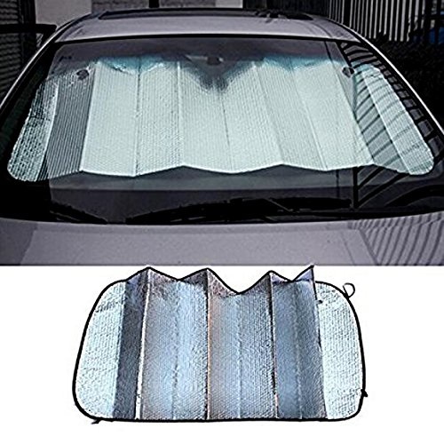 • Silver color foldable sunshade, during the hot sun's day, holds up shade for your car.