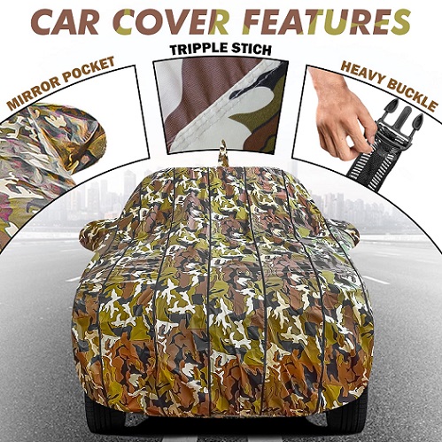 Carvito Waterproof Car Body Cover Compatible with Ford Figo Aspire (2015 to 2022) with Mirror Pockets (Camouflage Design)